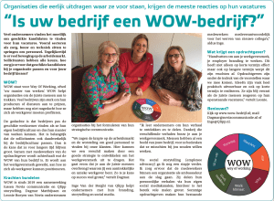 Wow? WOW staat voor Way Of Working, ofwel ‘uw manier van werken’. WOW helpt organisaties om de juiste mensen aan te trekken. Veel bedrijven zijn sterk om hun producten of diensten aan te prijzen, maar hebben nog niet nagedacht hoe ze zich als werkgever moeten profileren. De gedachte is dat bedrijven pas de geschikte werknemer […]